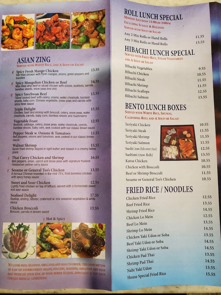 Fuji Asian Bistro offers a thoughtfully curated menu that blends classic Asian flavors with contemporary fusion touches. The menu creates a welcoming vibe, perfect for casual lunches, relaxed dinners, or enjoying sushi and small bites with friends. You’ll find a range of dishes from comforting soups like miso and egg drop, to satisfying hibachi specials, fresh sushi combos, and flavorful fried rice and noodle options.
